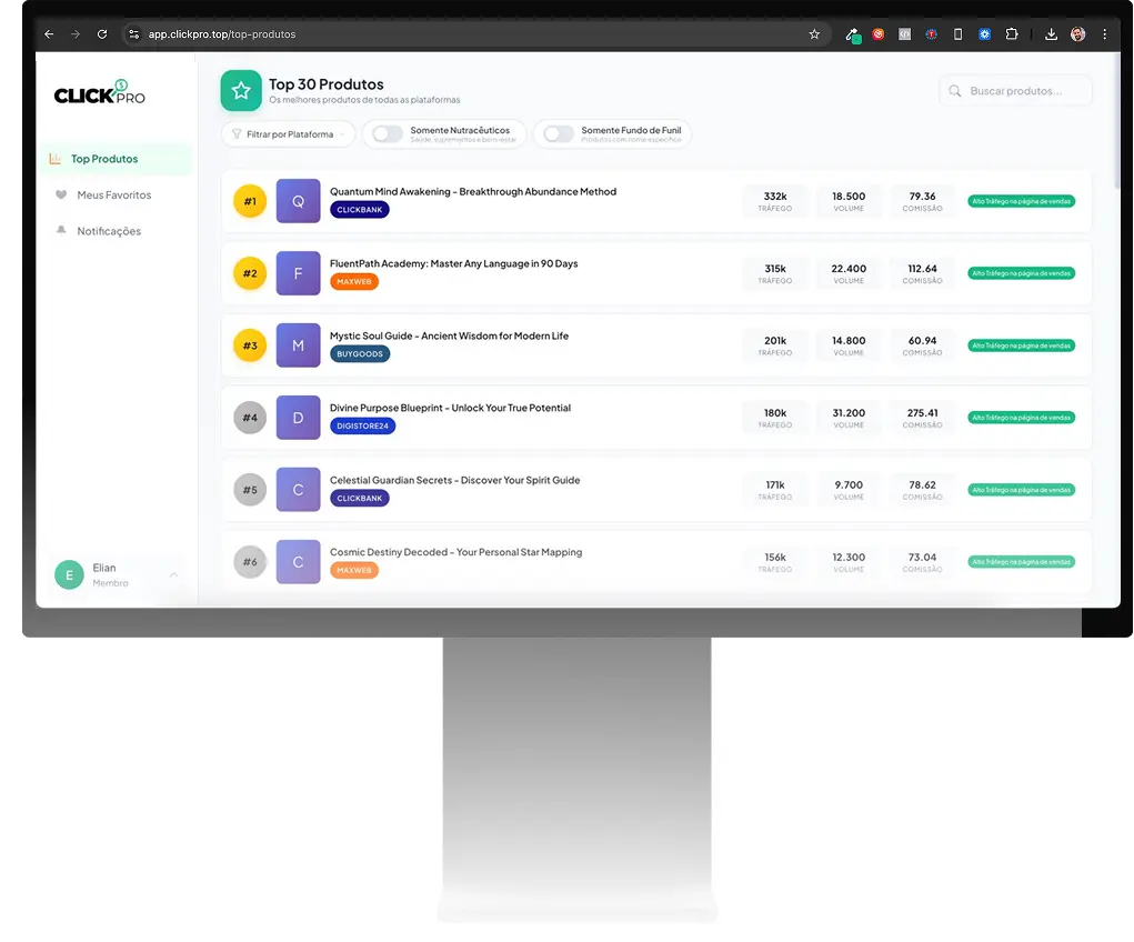 Chega de ficar perdido sem saber qual produto é melhor para promover. Com o Click Pro você vai encontrar produtos que fazem os afiliados destravarem suas vendas.